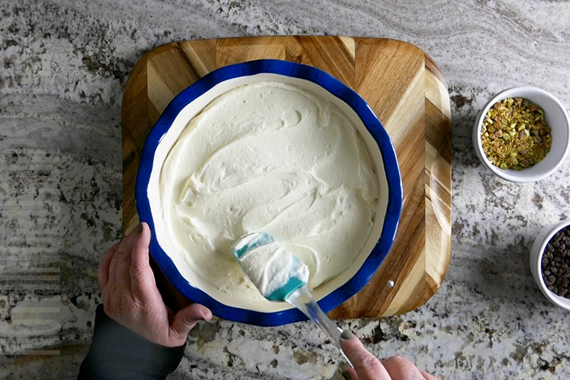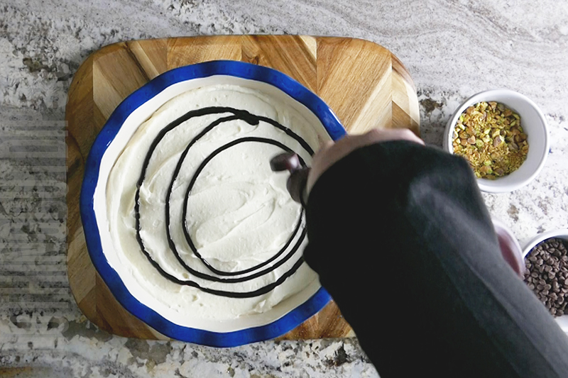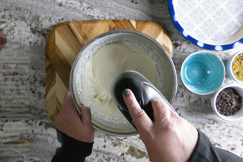 5. Choose your favorite cannoli compliment and sprinkle on mini chocolate chips or crushed pistachios.