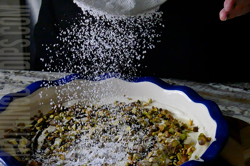 We chose to use pistachios to top this cannoli dip since it is an ingredient often used for the classic dessert. They have a beautiful color. However, my personal preference for taste is the to add the mini chocolate chips instead. You should choose your favorite or go with something totally out of the box, like mini candies, crushed cookies or cereal, such as Fruity pebbles.