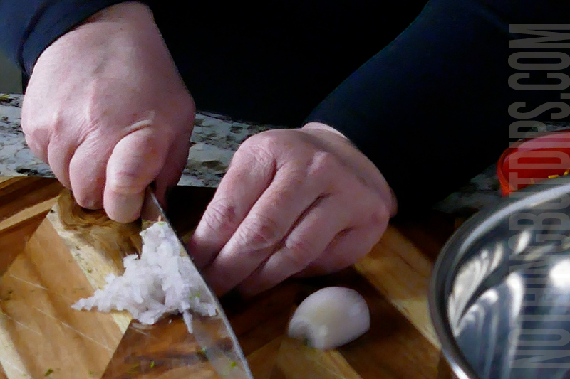 - Finely dice one small shallot and add it to the bowl.