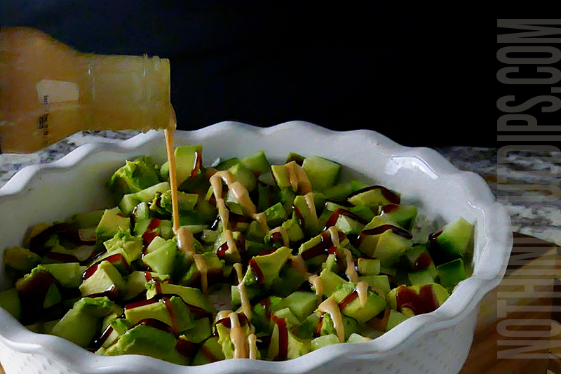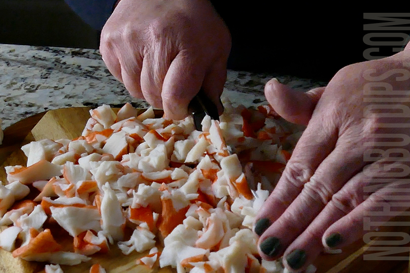 • Size matters: When dicing the crab, avocado and cucumber, it’s important to keep the pieces nice and small so that you get a nice variety of flavors in one bite when you dip in.