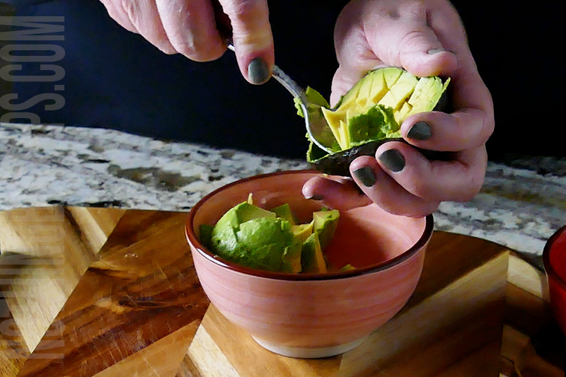 • Avocado: When choosing the perfect avocado, it should give a little when squeezed gently. This is the ripeness level we’re after.